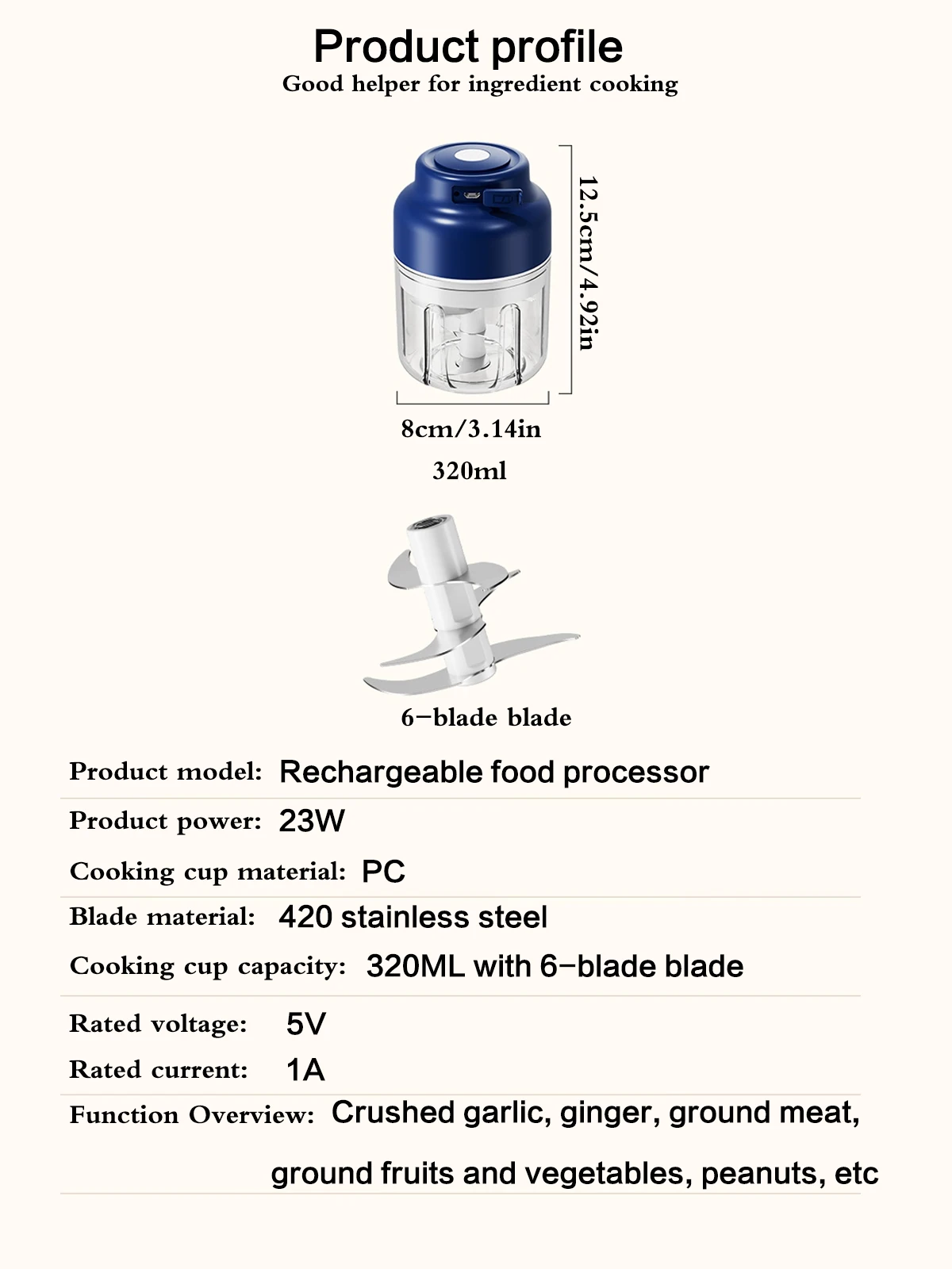 The six-blade design ensures efficient and quick grinding, making it ideal for baby food processing and meat grinding.